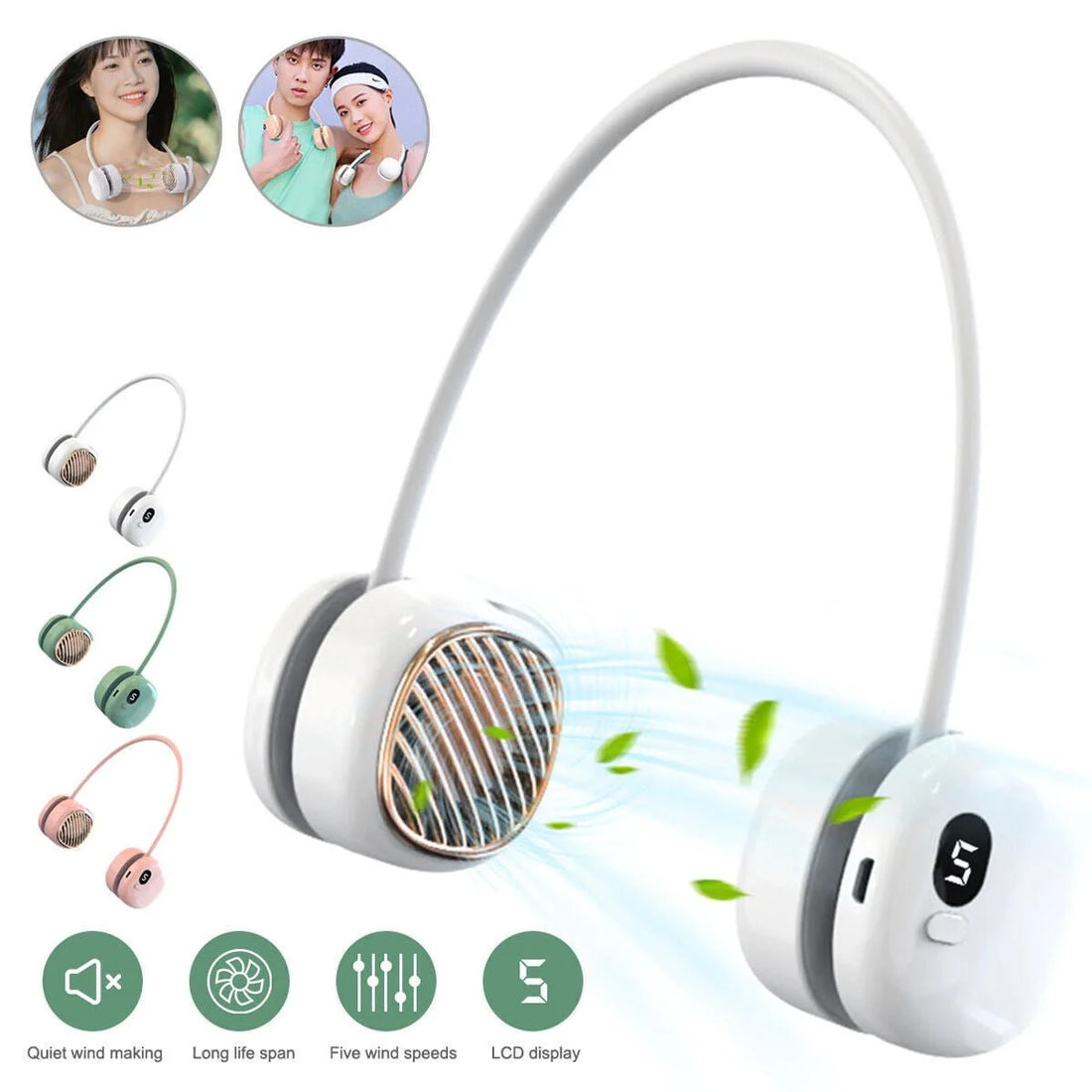 Portable Hanging Neck Fan 5 Speed Wearable Personal Fan Air Cooler Rechargeable