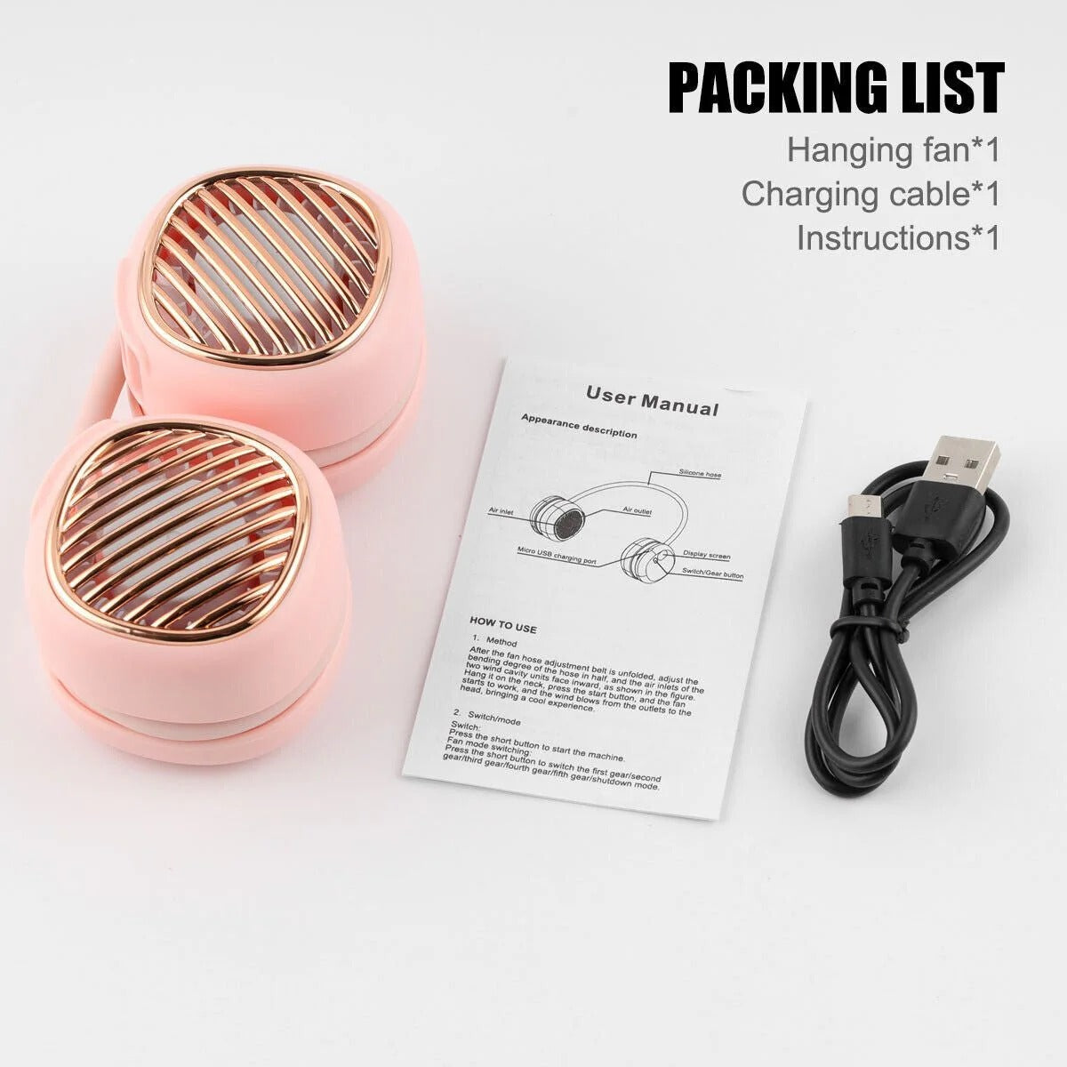 Small portable mini hanging fan, foldable hose, easy to put into the bag mini does not occupy a place